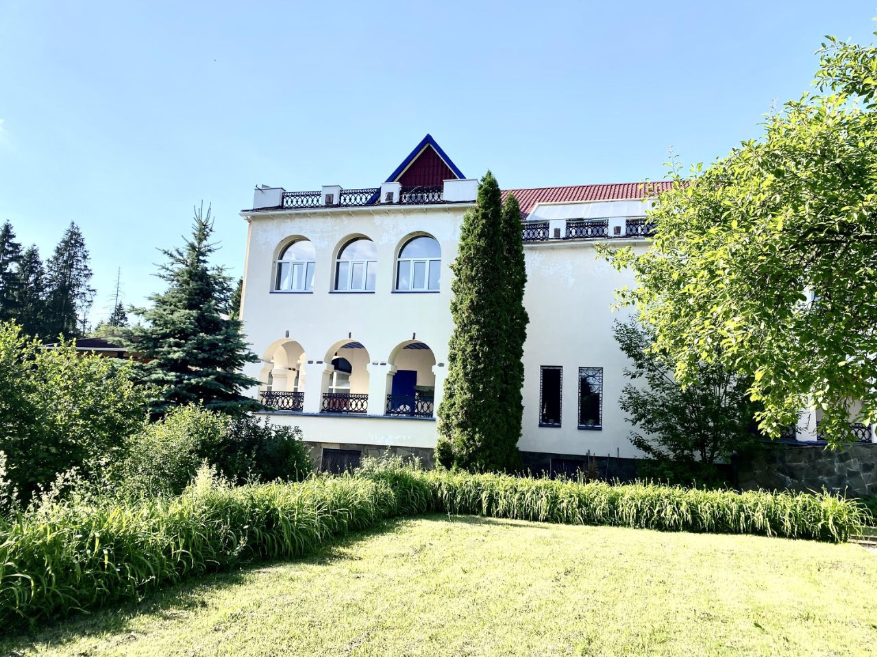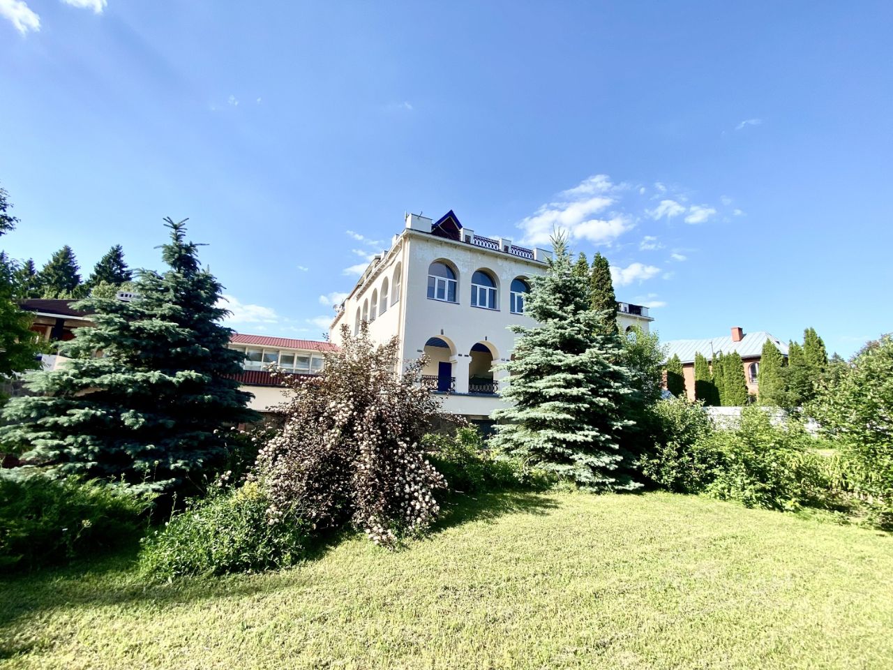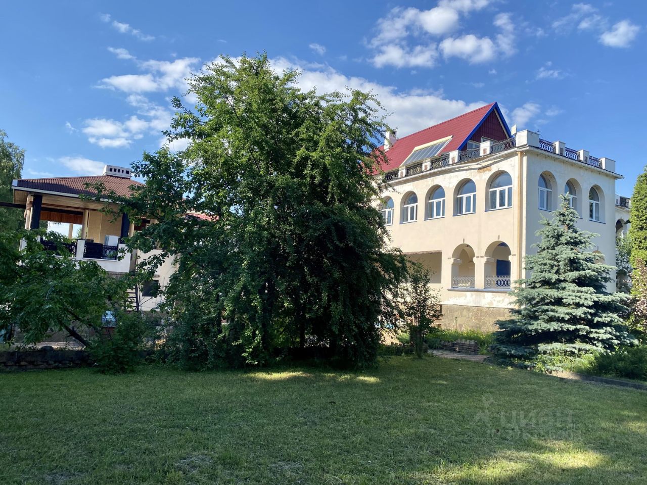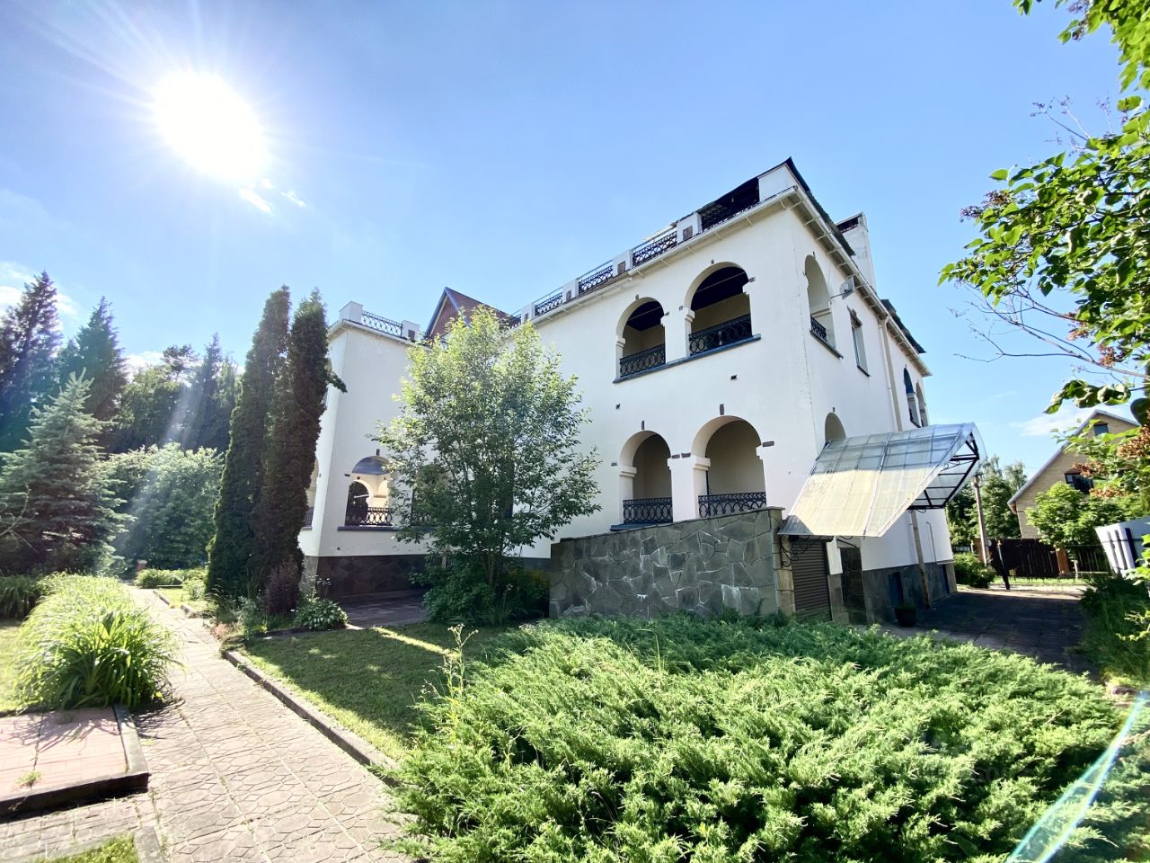 Дом на продажу: окружите себя комфортом на природе! Уникальная возможность ежечасно наслаждаться прелестями загородного жилья и каждую минуту чувствовать себя в безопасности. Дом расположен в живописной деревне, граничит с лесным массивом. Фасад выполнен в приятной цветовой гамме. Внутри дома и по его периметру установлено видеонаблюдение. Ворота автоматические. Дом имеет 4 уровня. 1 уровень (цокольный этаж): гараж на 3 машины + крытая гостевая парковка на 2 машины, сауна, технические помещения. Второй уровень: прихожая, отдельная гардеробная, кухня, столовая, огромная просторная гостиная со вторым светом, с выходом на патио, гостевая спальня, каминная с действующим камином. Третий уровень: три спальни с отдельными санузлами и террасами, бильярдная. Четвертый уровень: мансардная. Есть просторная остекленная терраса с возможностью организации зимнего сада и крытая терраса с отдельным входом. Площадь участка 26 соток, посажены плодовые деревья и кустарники. Есть теплица. Большая площадка для парковки авто. Достойное окружение, все соседи живут круглогодично. За домом озеро. Рядом река. Инфраструктура: церковь, родник с красиво оформленной зоной отдыха, три продуктовых магазина, ресторан, конный клуб.