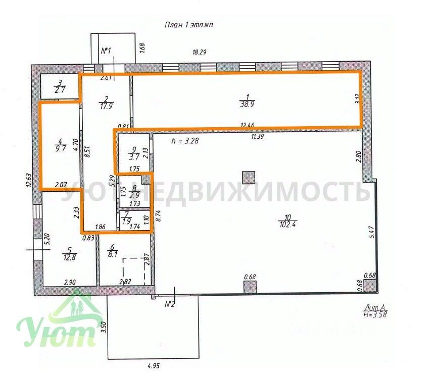 Площадь помещения 71,3 . 2е мокрые точки.